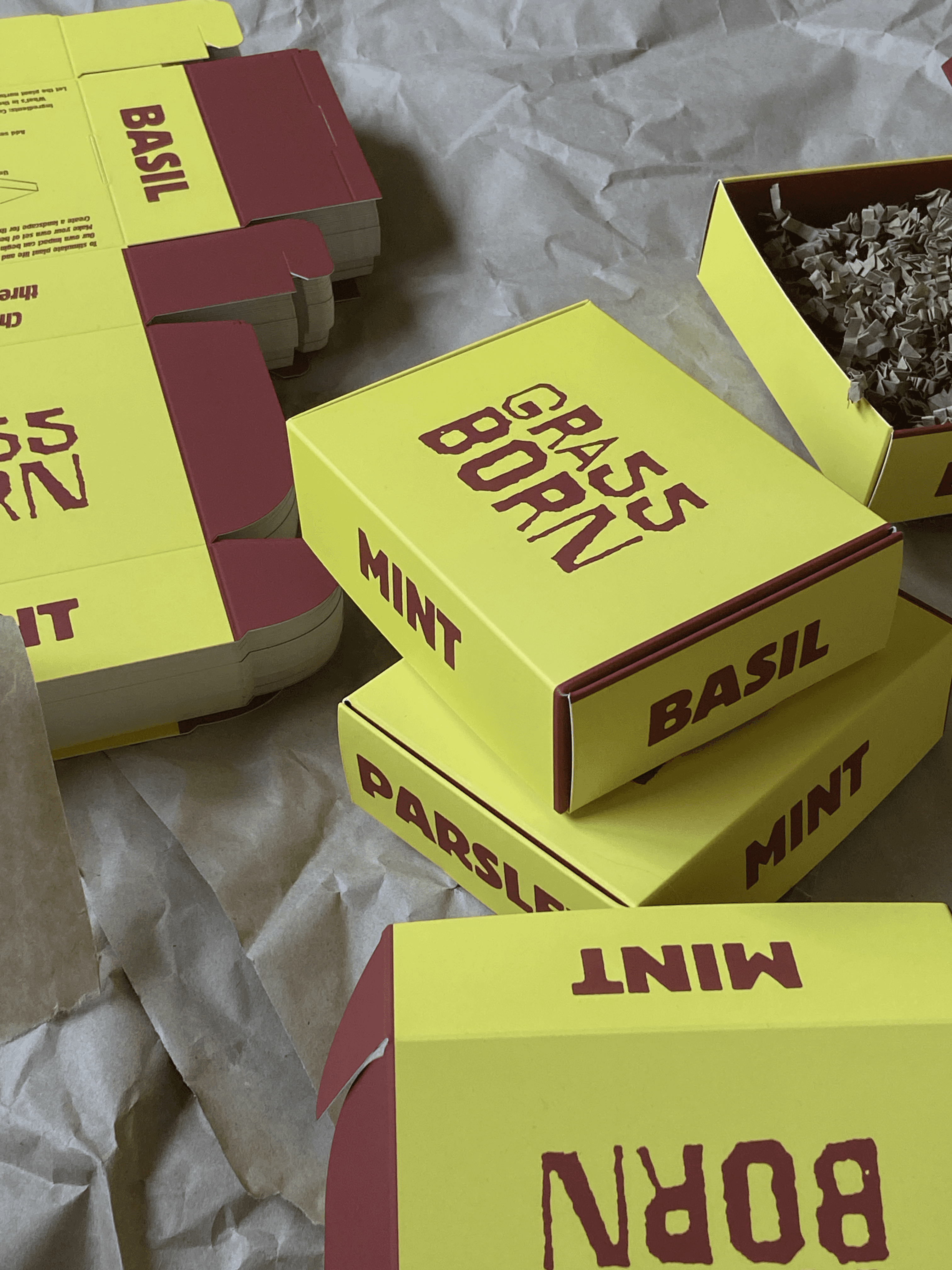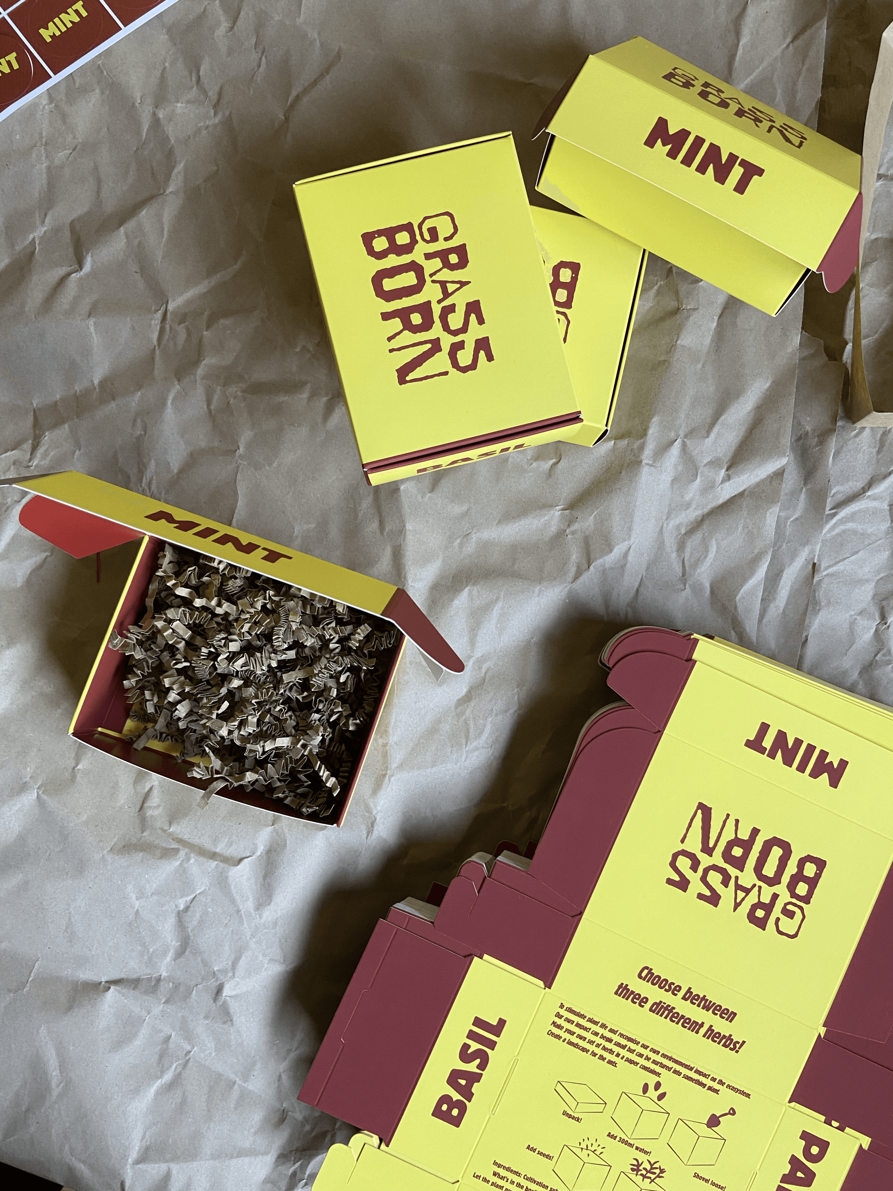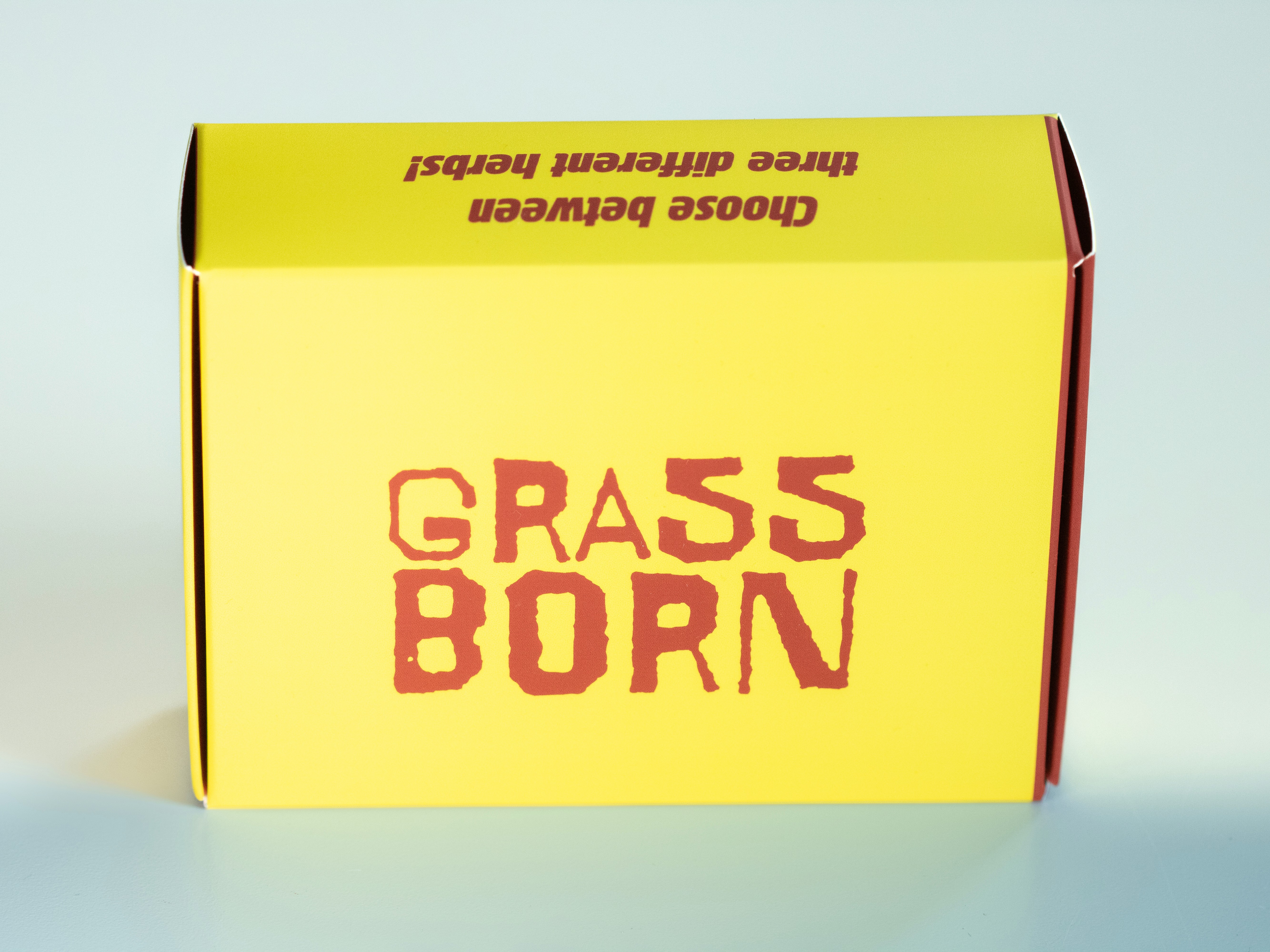 Package design I did myself inspired by the "Grassborn" project. I payed attention to the dedicated colour palette. Not the first time I've done some packaging work but definitely not at this scale. This product stands as a symbol for the physical limitations I had while making the project "Grassborn". You can grow out of almost anything when you nurture your daily health and set yourself new sets of goals. Let's grow together!