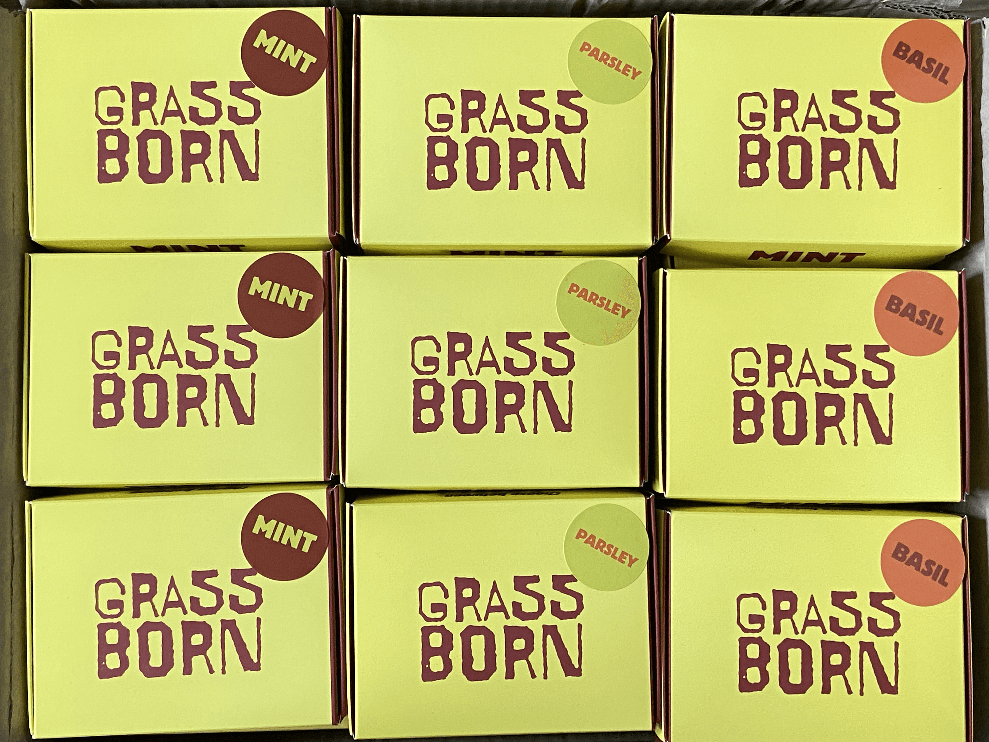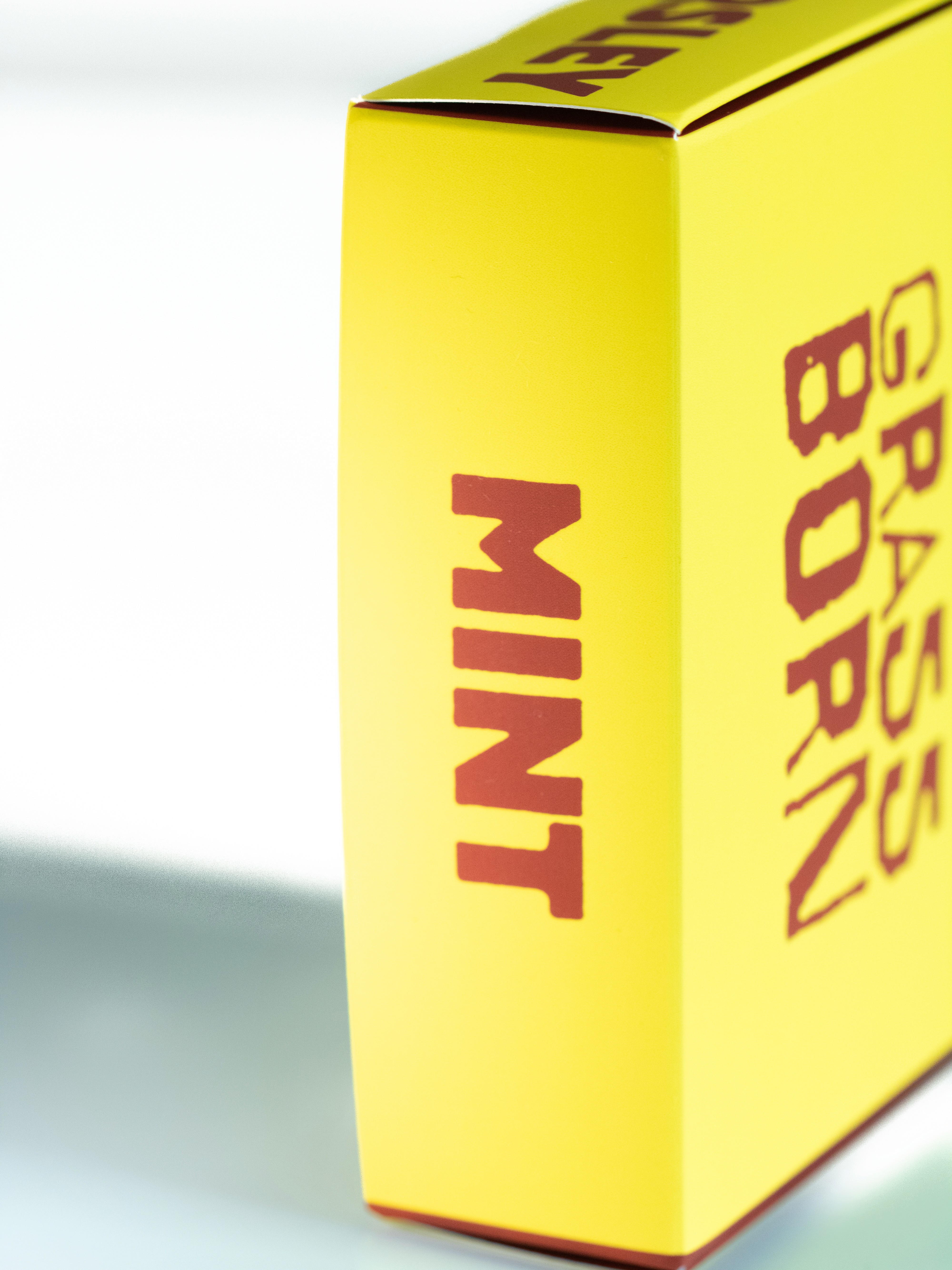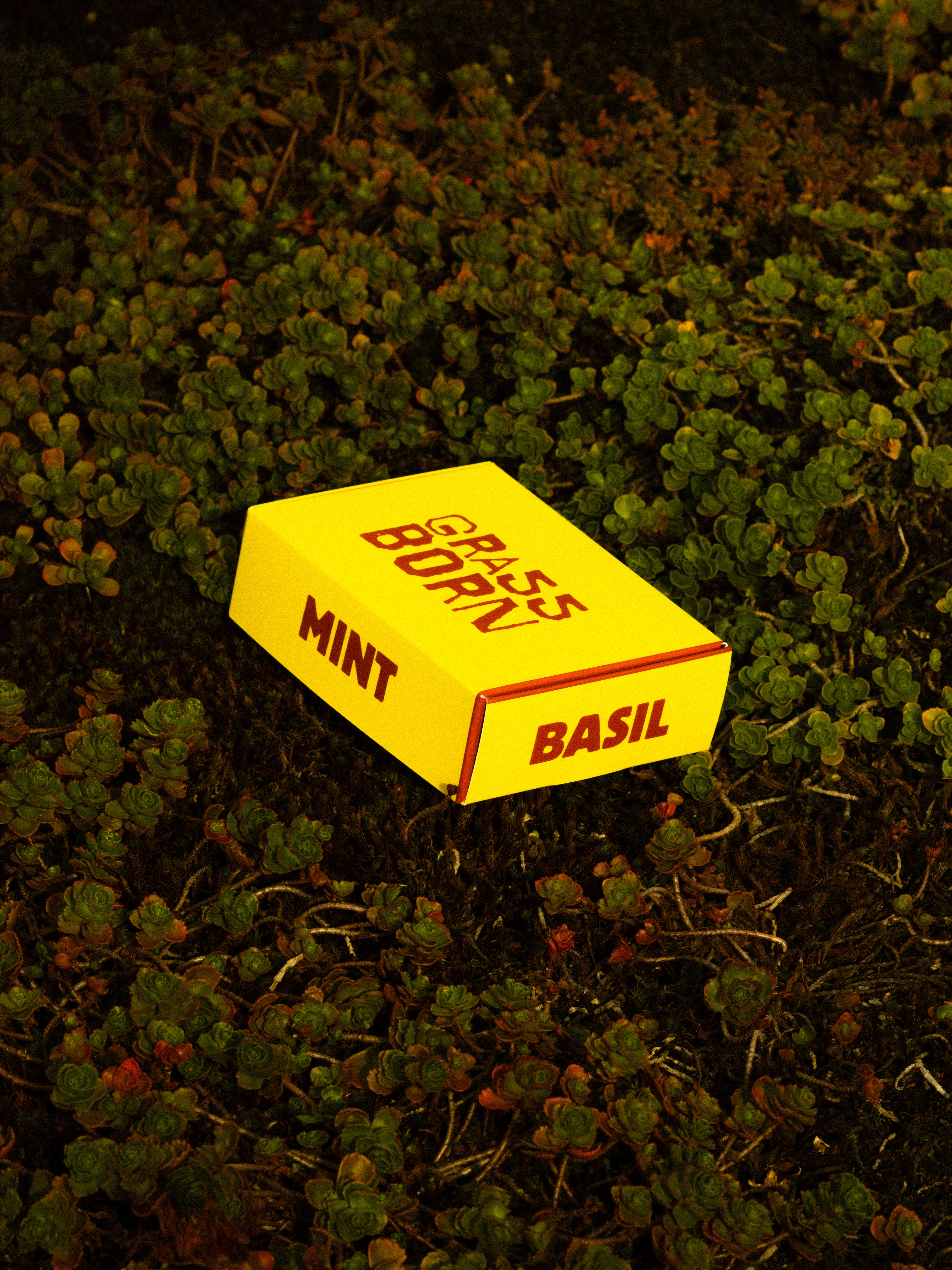 Package design I did myself inspired by the "Grassborn" project. I payed attention to the dedicated colour palette. Not the first time I've done some packaging work but definitely not at this scale. This product stands as a symbol for the physical limitations I had while making the project "Grassborn". You can grow out of almost anything when you nurture your daily health and set yourself new sets of goals. Let's grow together!